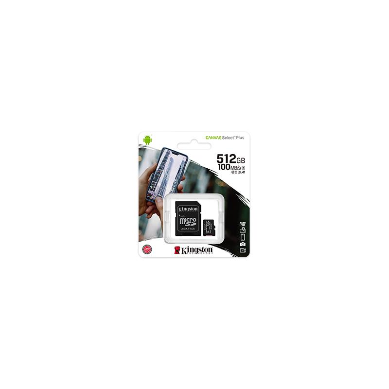 მეხსიერების ბარათი Kingston microSD 512GB C10 UHS-I U3 A1 R100/W85MB/s + SD