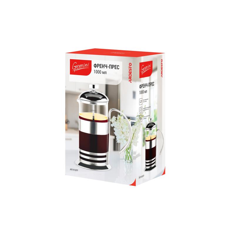 ჩაიდანი ARDESTO AR1910FP French press Gemini, 1000 ml, stainless steel, glass