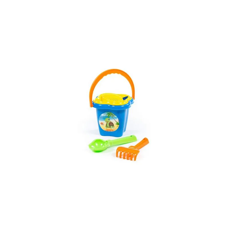 პატარა ქვიშის ნაკრები: სათლი, საცერი, სარწყავი, ნიჩაბი და ფოცხი
