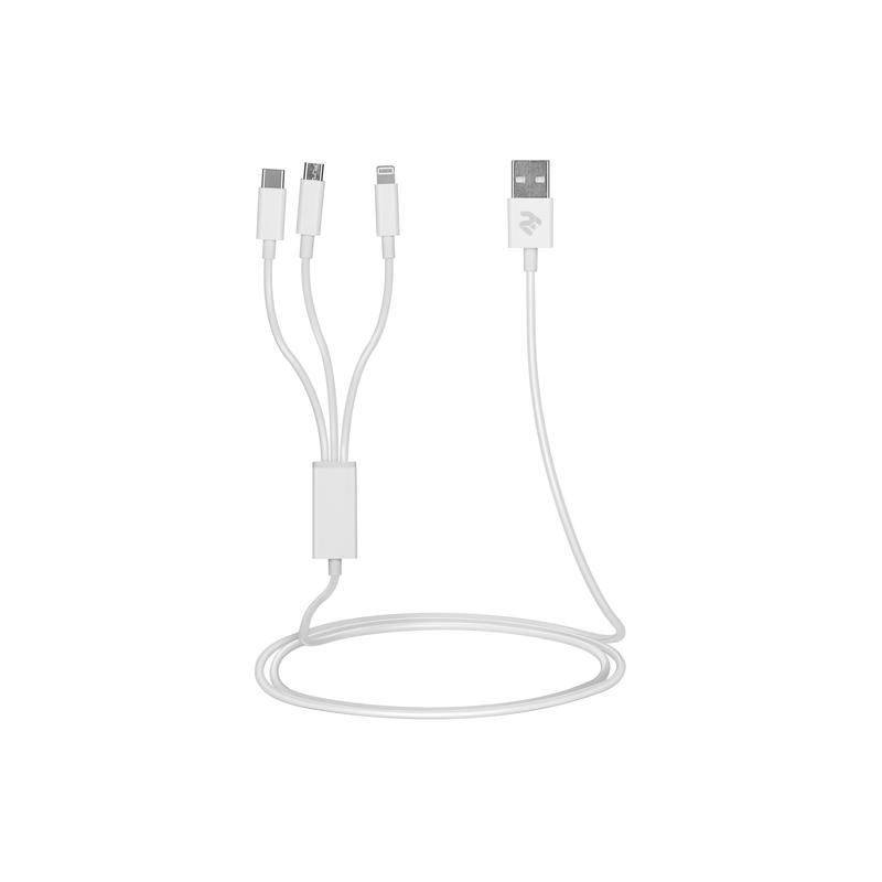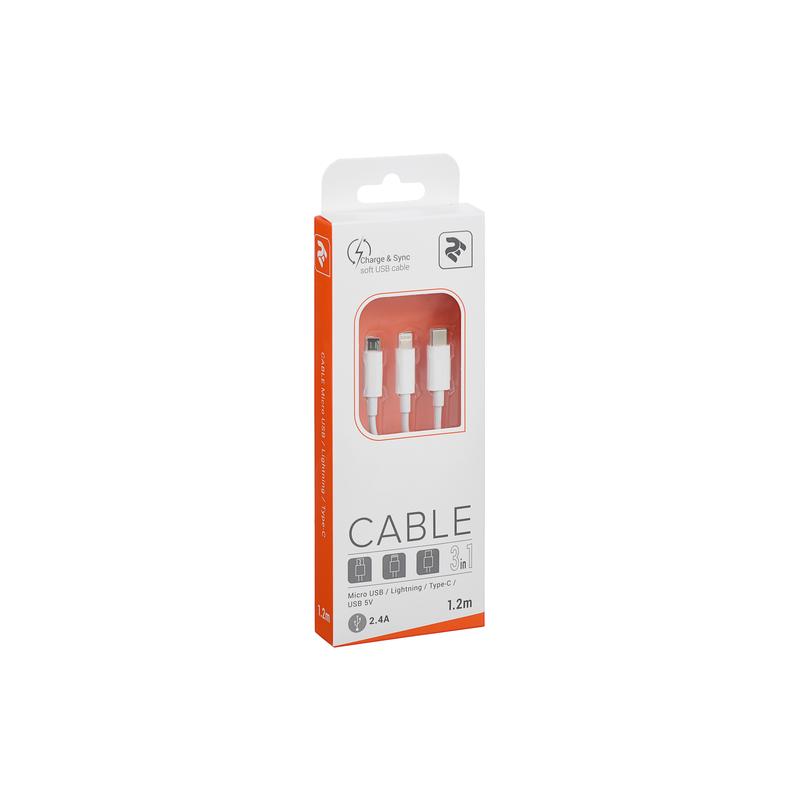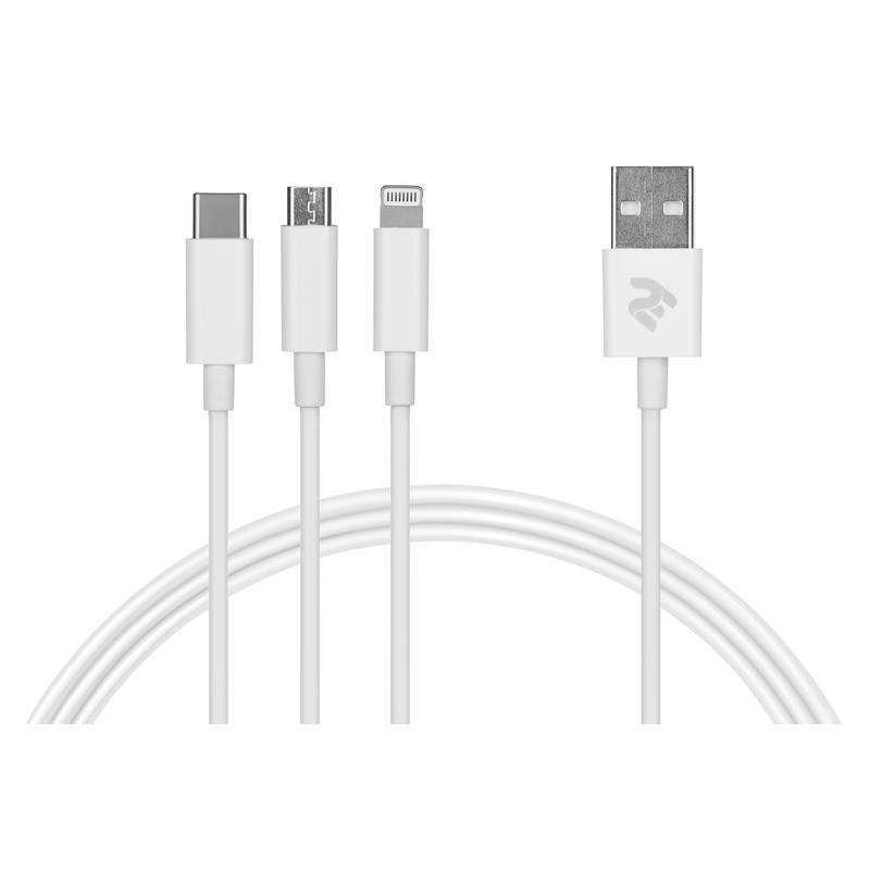 კაბელი 2E Кабель USB 3 in 1 Micro/Lightning/Type C, [2E-CCMTLAB-WT]