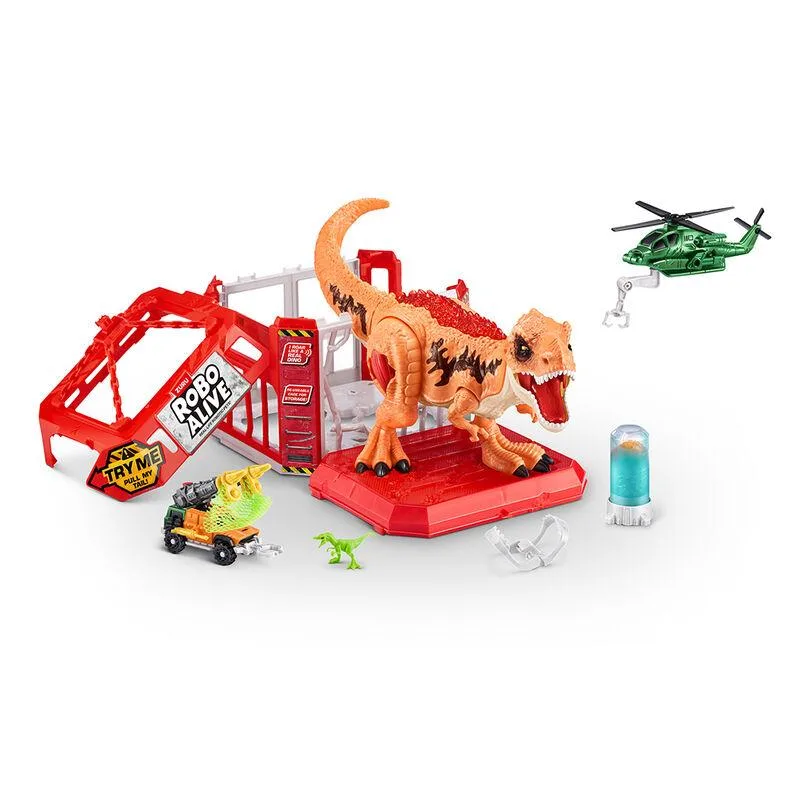 მოძრავი დინოზავრი და მონადირეები გალიით