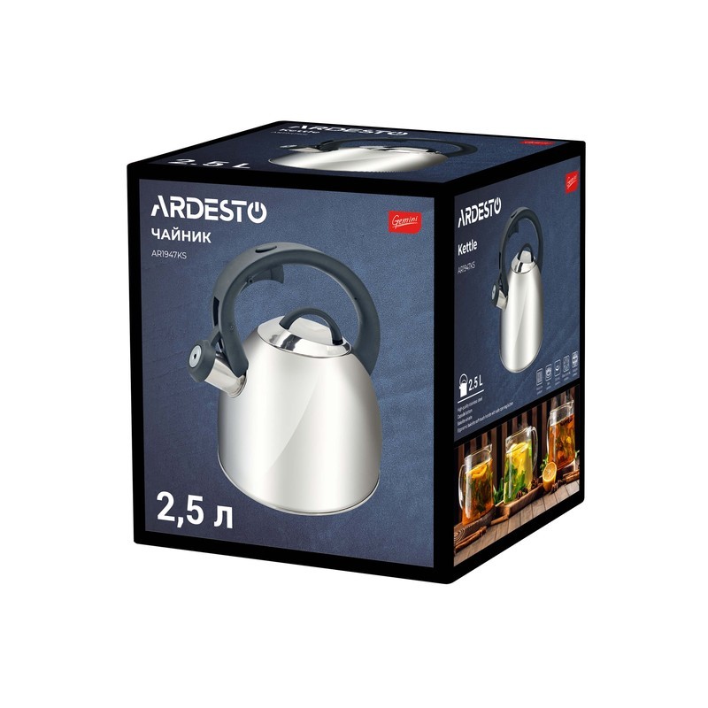 ჩაიდანი Ardesto AR1948KS Gemini, 2.5l, Kettle, Stainless Steel
