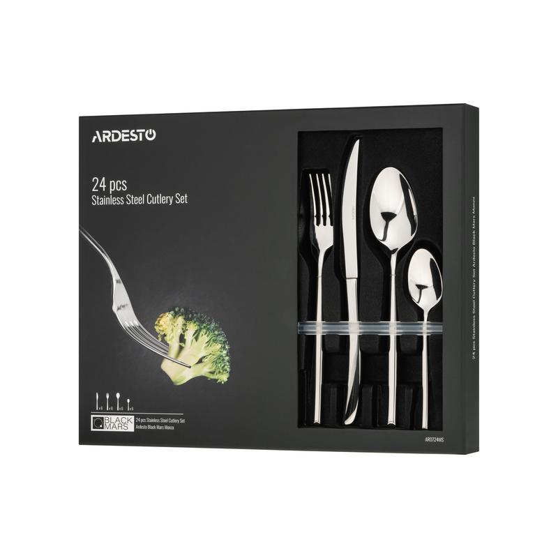 დანა ჩანგლის ნაკრები Ardesto AR0724BES Black Mars Bergmann, 24pcs Cutlery Set, Silver